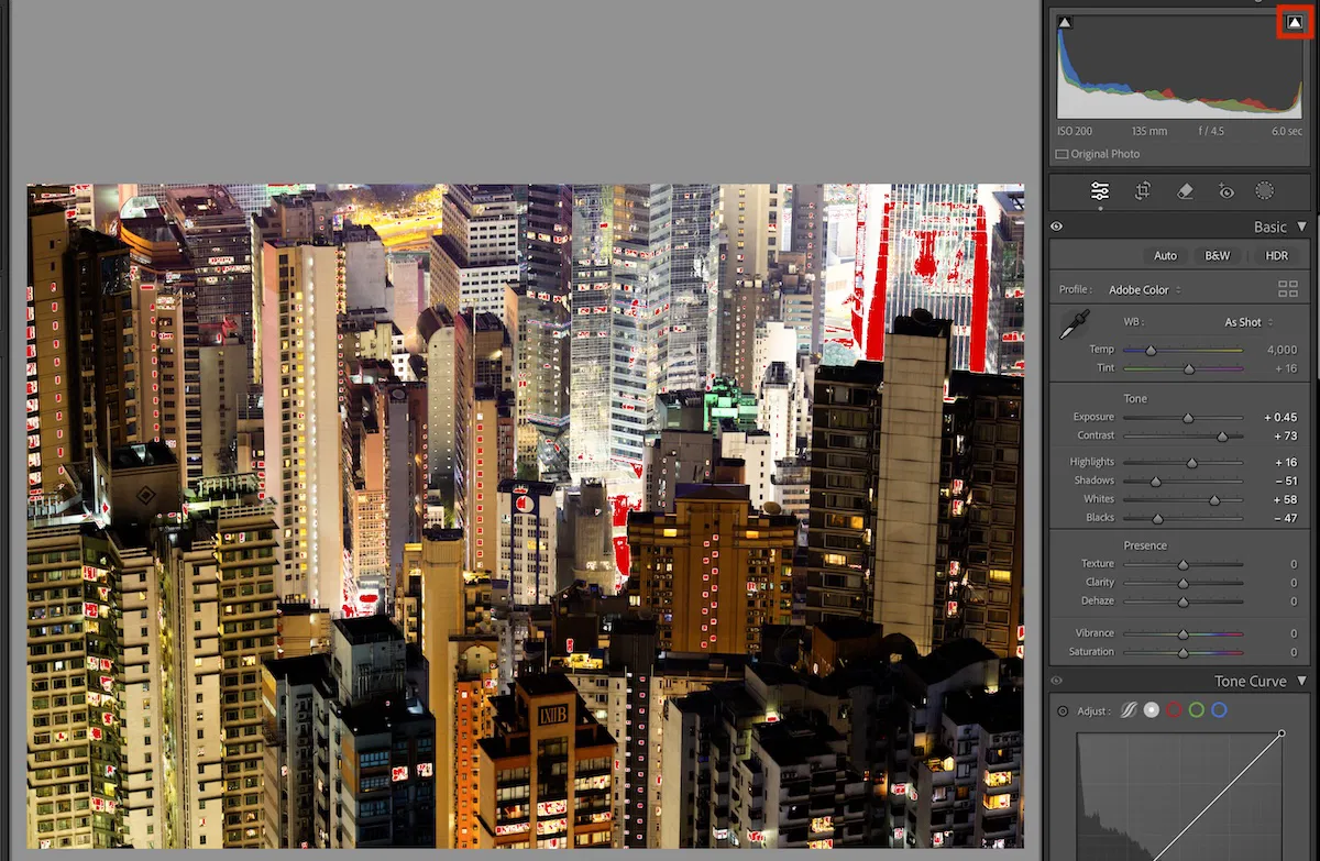 نمایش مناطق clipped یک ویژگی عالی است که اکثر نرمافزارهای ویرایش دیجیتال نیز دارند، زیرا به شما کمک میکند بیشترین اطلاعات ممکن را در تصویر حفظ کنید. حتی اگر این جزئیات به سختی قابل مشاهده باشند، داشتن کمی اطلاعات همیشه بهتر از سفید یا سیاه مطلق است.