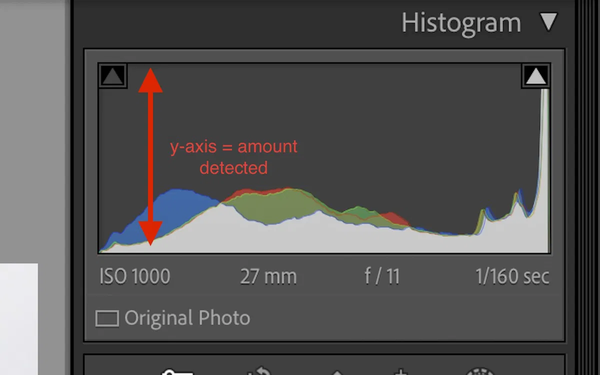 نکتهای که عکاسان نمیخواهند، انباشتگی نمودار در سمت چپ یا راست است. این وضعیت به معنی از دست رفتن بسیاری از تونها به دلیل نوردهی بیش از حد یا کمتر از حد است.